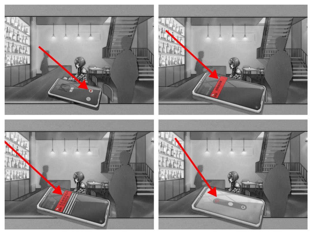 7.在酒馆中的女主,收到了父亲的电话微信轰炸;点击拒听按钮,点击不查看微信信息,最后点击关机键,世界彻底清净
