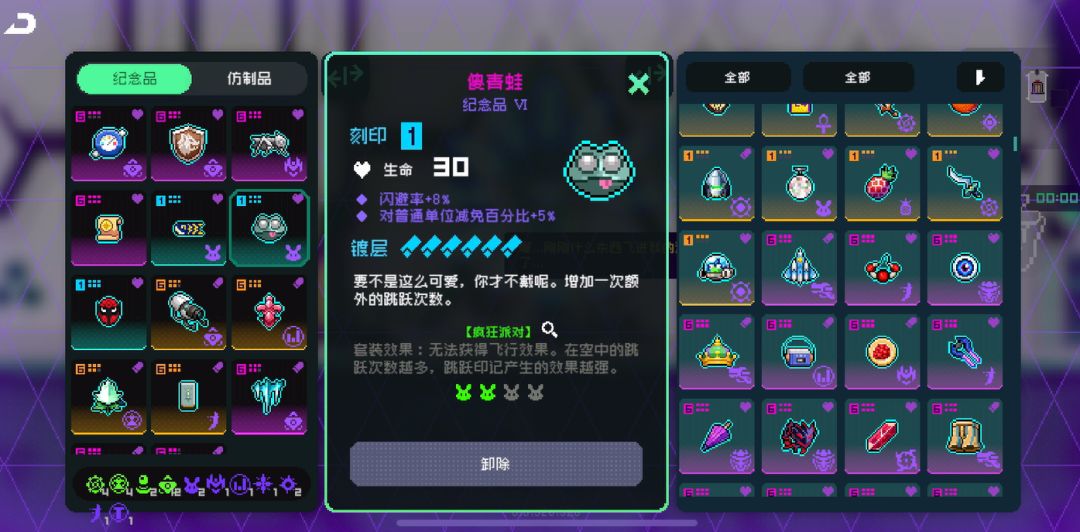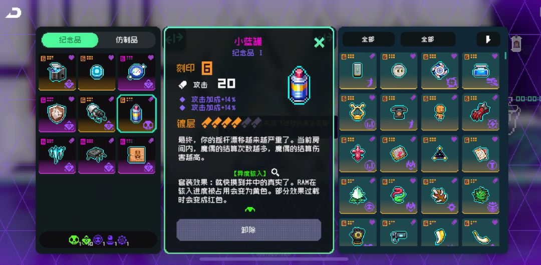最后一层,不会吸取任何纪念品,属性好的攻击暴击爆伤等纪念品统统安排上。放几个跳跃的,小普禁飞需要跳上去。打不开属性门走右边那条。
