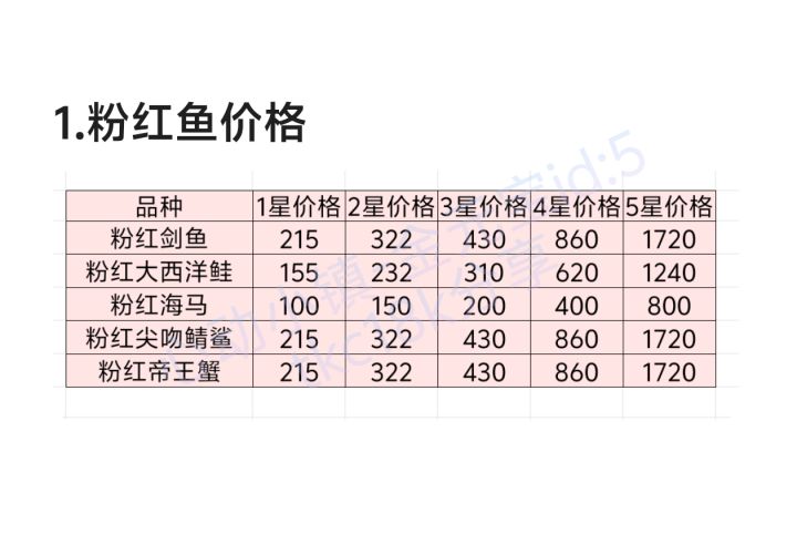 1.粉红鱼价格