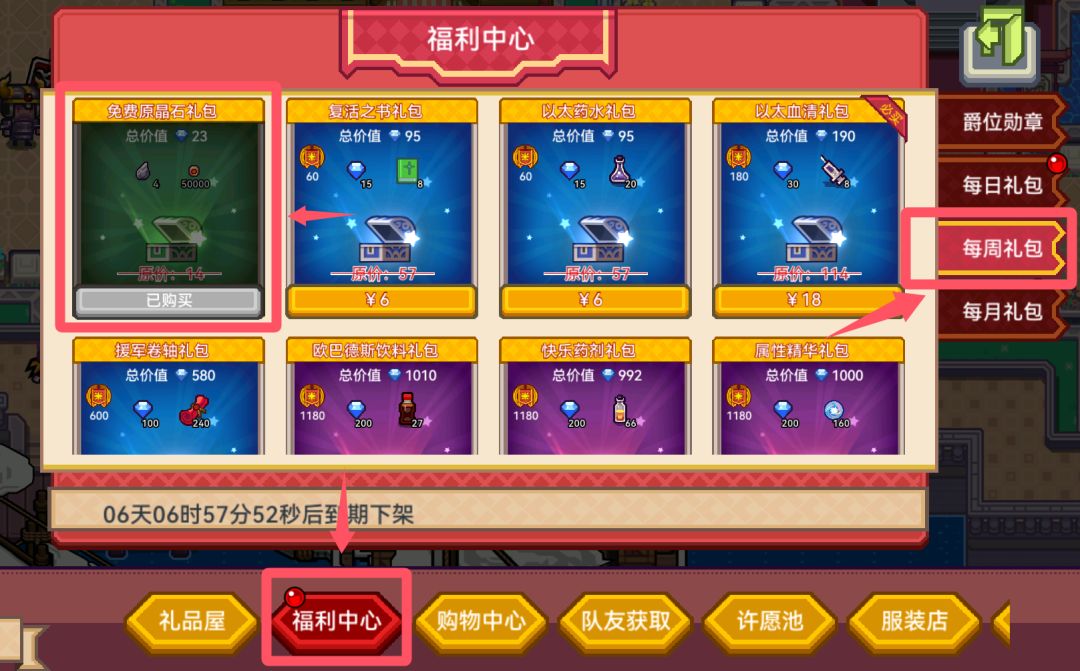 1.商城免费每周礼包领取