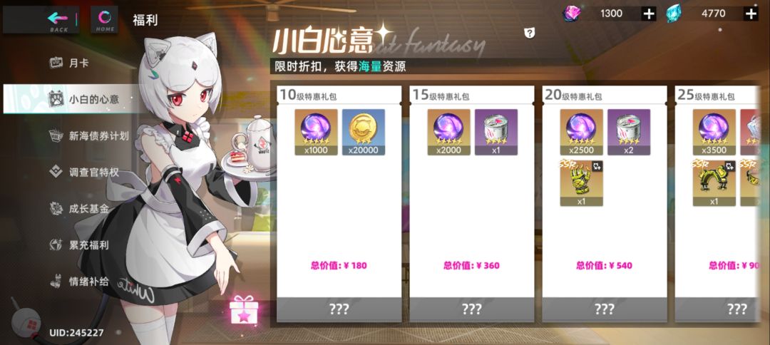 然后会弹这个完美效劳的礼包,个人推荐必买,也是新手配队之一,艾可-完美效劳。