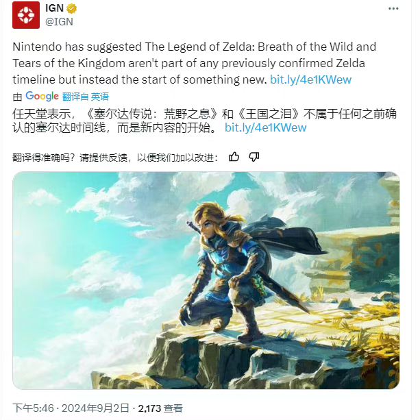 9/2号下午,IGN发文宣称,任天堂已确认《塞尔达传说 旷野之息》&《塞尔达传说 王国之泪》,两者独立于此前的《塞尔达传说》时间线