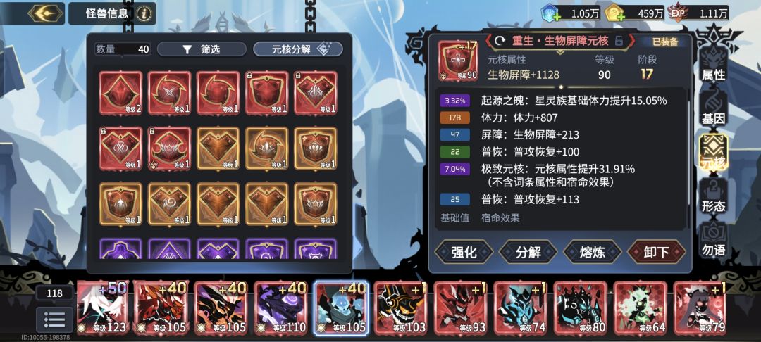 妄焱选择重生攻击核,词条增益极化,负面抵抗,攻击起源之魂