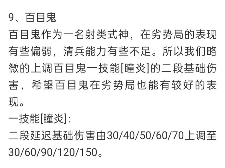 全ad射程上调 百目鬼二技能伤害下调