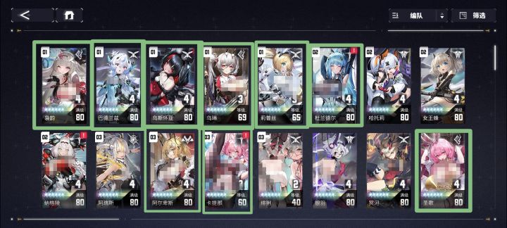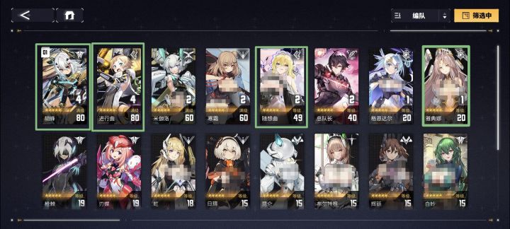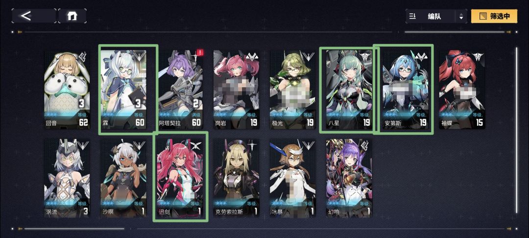 安第斯(全体生存)、霖(自我超耐打、NP回复、指定单体SP回复)、讯剑(单体输出)
