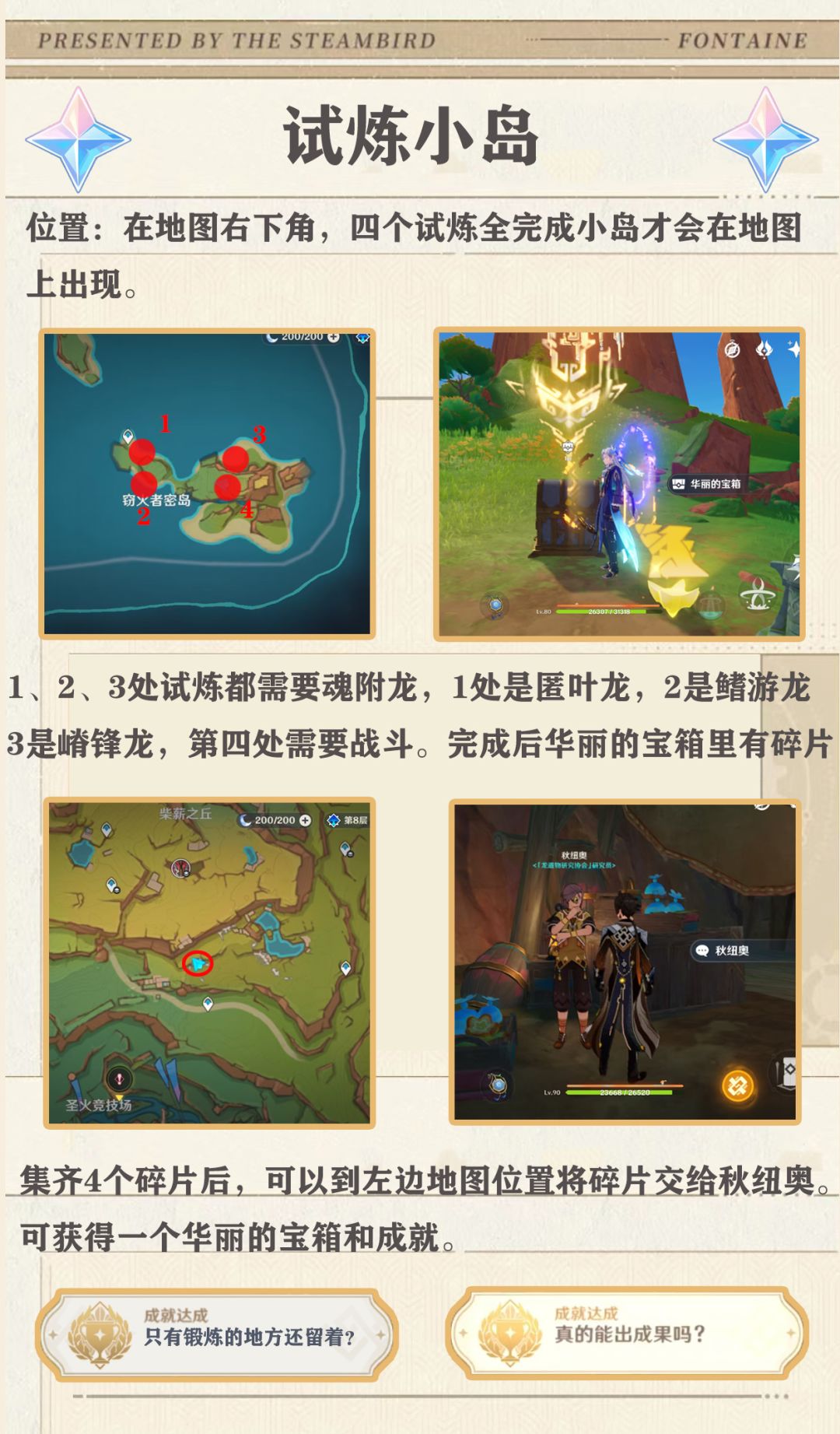 原神4个镌光铭印位置途中包含3个任务和1个隐藏地点,完成所有后可得10个成就