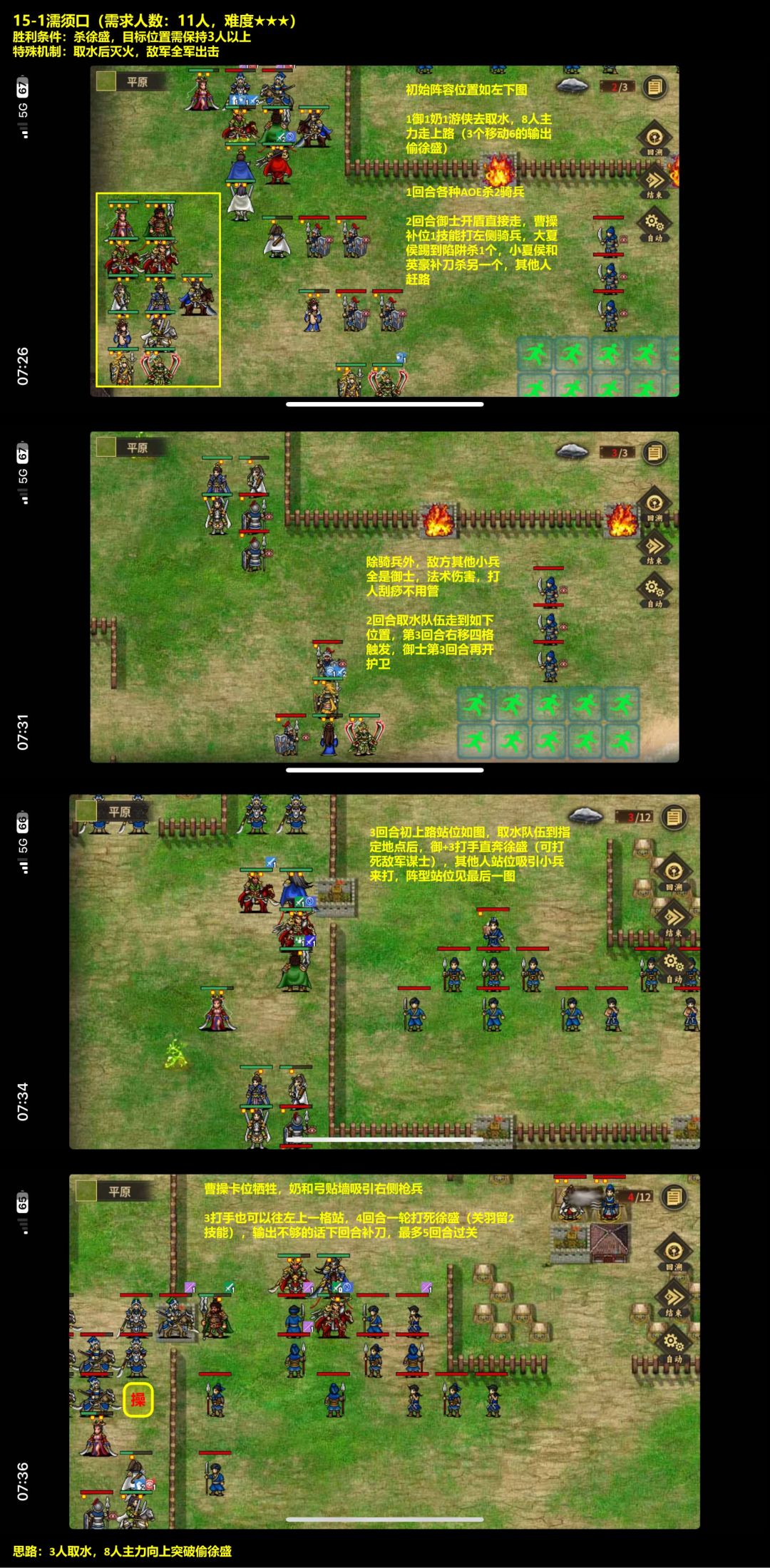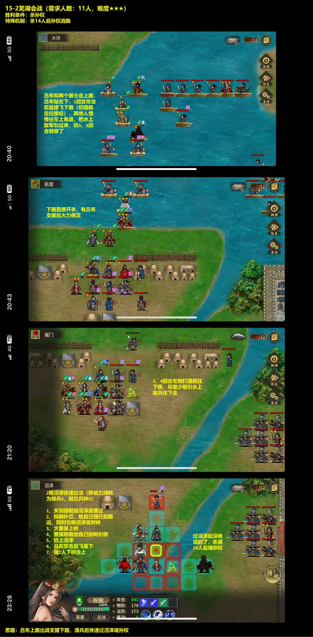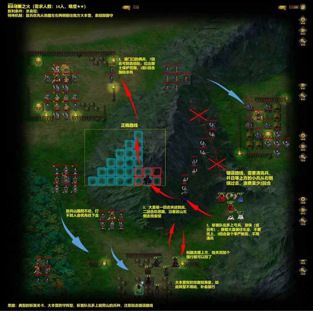 思路:上路3破袁绍带曹操跑路,吕布切换战场,奶和双弓摆脱追兵后支援下路;下路双奶双御(只跨1难度单奶够了)退到船体防守,后续只杀左侧和下方的敌兵,右侧10回合前别打死人,只慢慢刮痧和火烧,吕蒙、甘宁、周瑜等一干名将到不了前线就是废人。