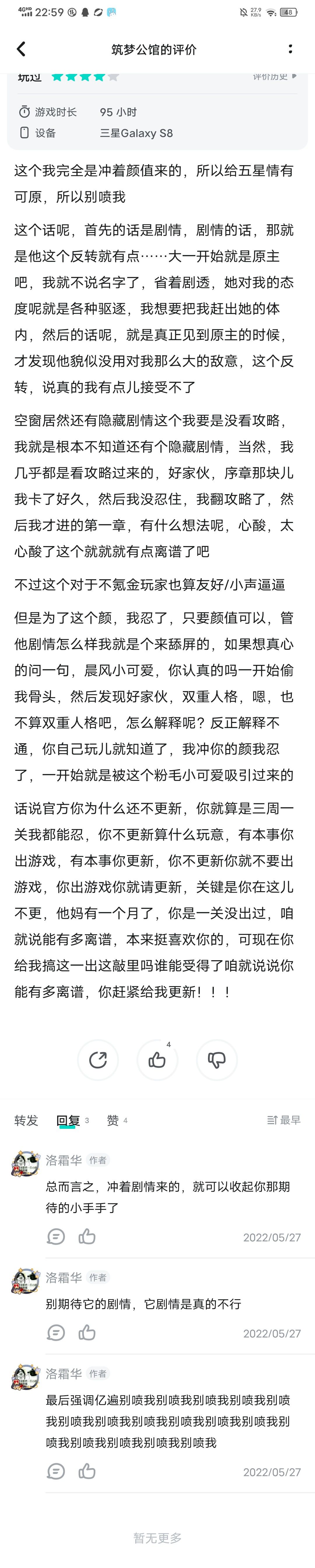 纪念一下吧,开服玩家 ,但是退坑多次,导致晨飞的SP卡错过了(永远的痛)还记得当初兴致勃勃的给这个游戏写好评,一直都期待他的剧情,即使后面慢慢淡坑,后面听说游戏跑路了真的很伤心……我以为他能陪我很久,因为我还能等到活动复刻,过年期间听说他复活了还很高兴,结果只是最后的捞钱,我承认当时真的很失望,但是也能理解,毕竟小厂游戏,没有资金,很缺钱,官方的最后一条公告是在宣传别的游戏,已经能看出他们是彻底放弃这个游戏了,幸运的是没有停服,还能偶尔上线看看,怀念一下以前,但是还是希望能够复活……(附以前我发的帖子)