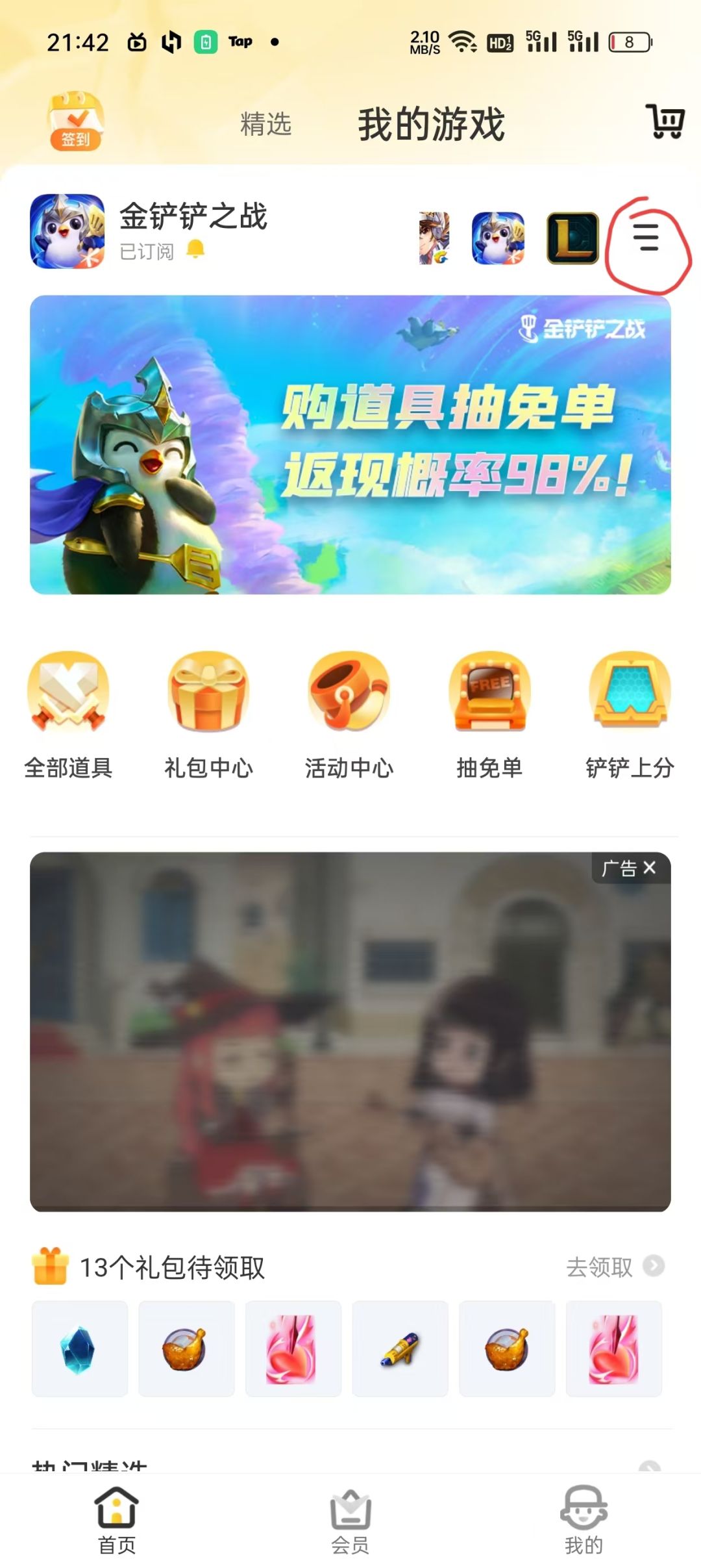 进入首页后选择左上角的游戏礼包