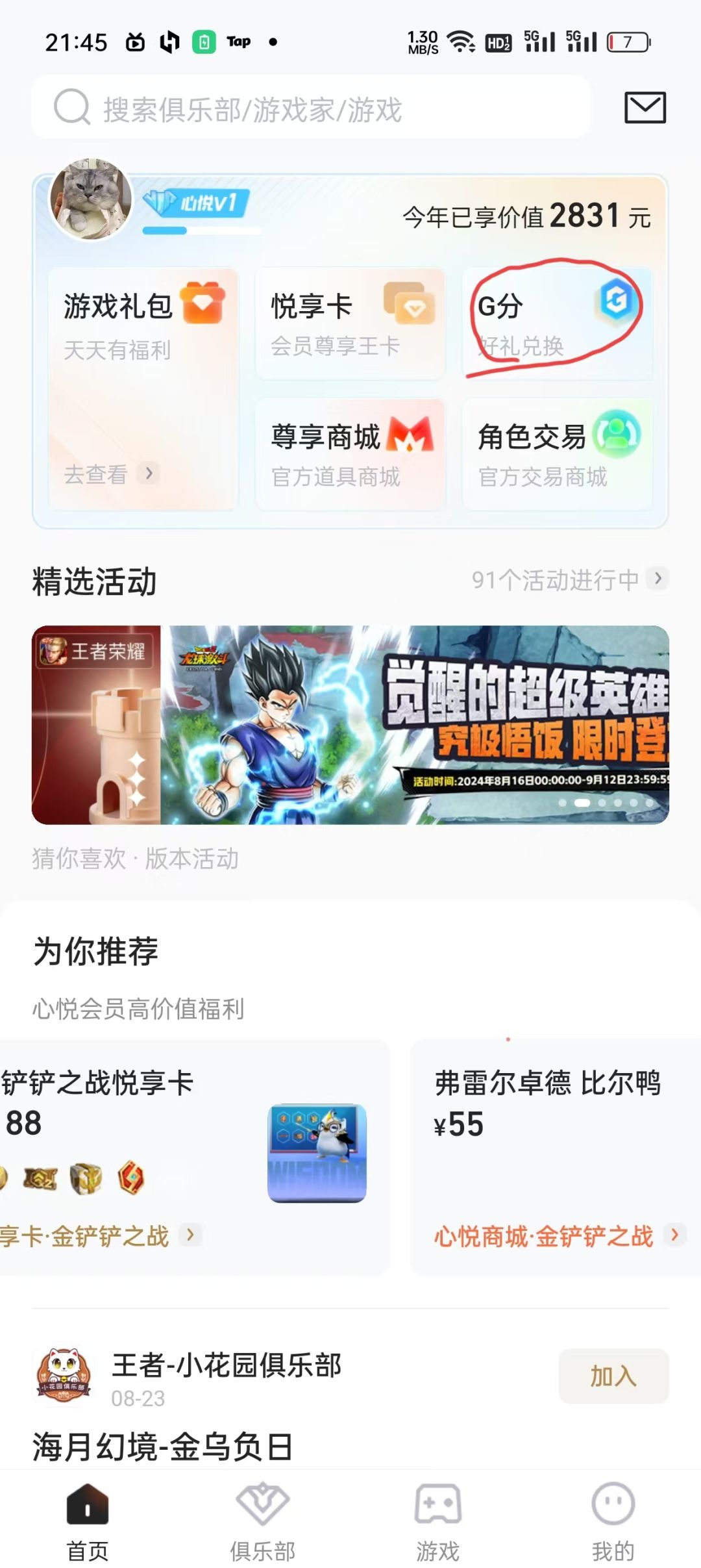 在这里签到和做任务可以获得G分