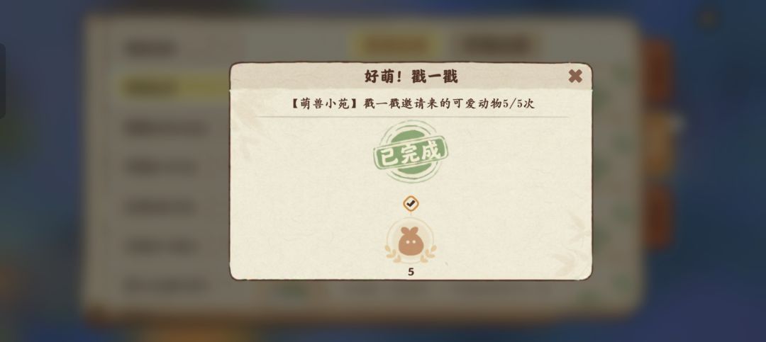 在萌宠小屋里,戳一戳邀请来的动物五次,还有个成就