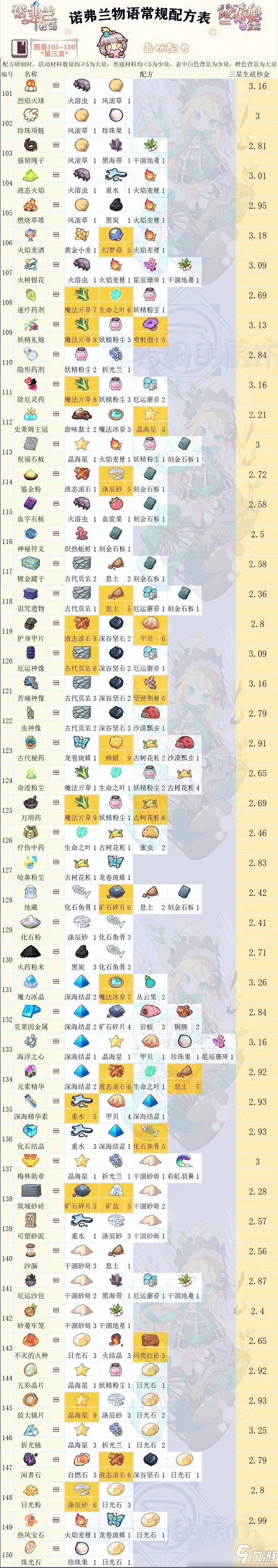 诺弗兰物语完美配方图鉴大全一览