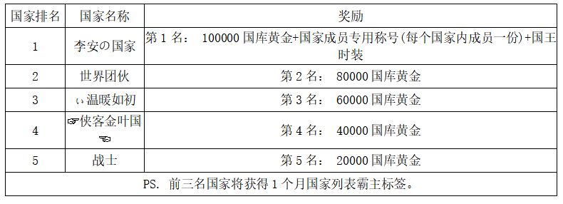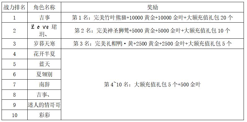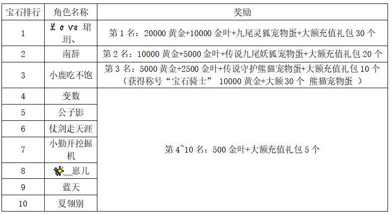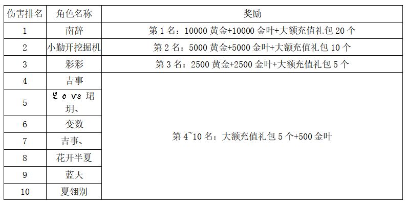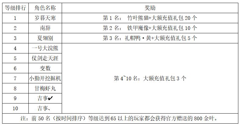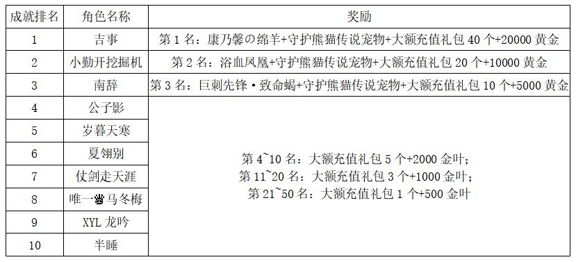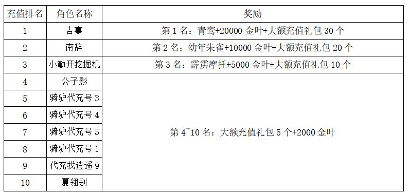 注:以上活动排名均以服务器时间为准。新区排行榜活动如发现存在违反游戏相关规定使用游戏外的辅助工具进行作弊将取消获奖资格。