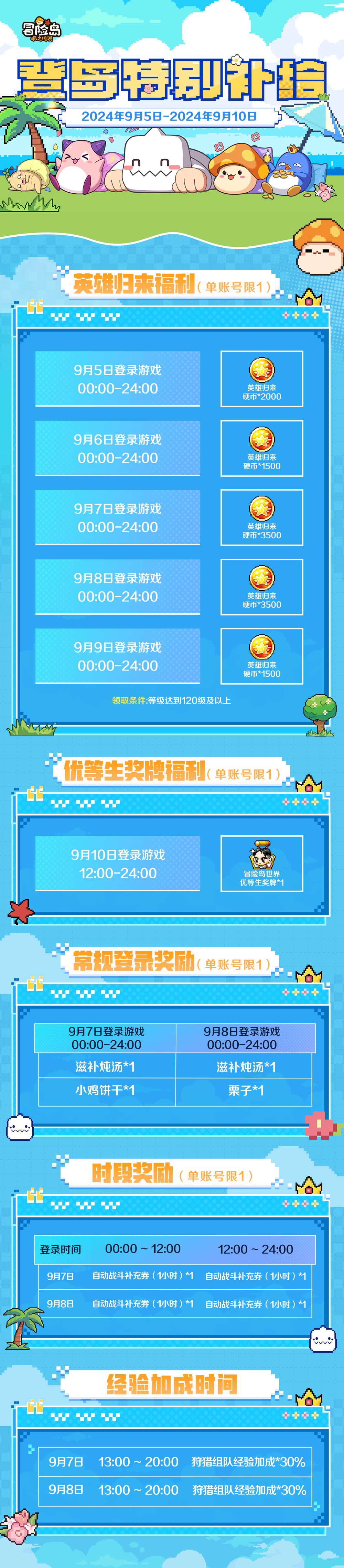 9月10日 12:00~24:00 登录游戏:冒险岛世界优等生奖牌*1