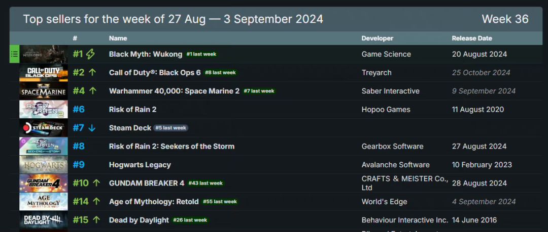 9/3号,SteamDB更新了第36周(8月27日至9月3日)的游戏销量榜❗❗❗