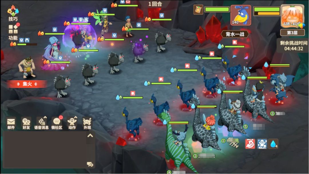 前排为黑暗鸡,连续攻击、三段攻击以及普通攻击随机释放,并带有破甲天赋。