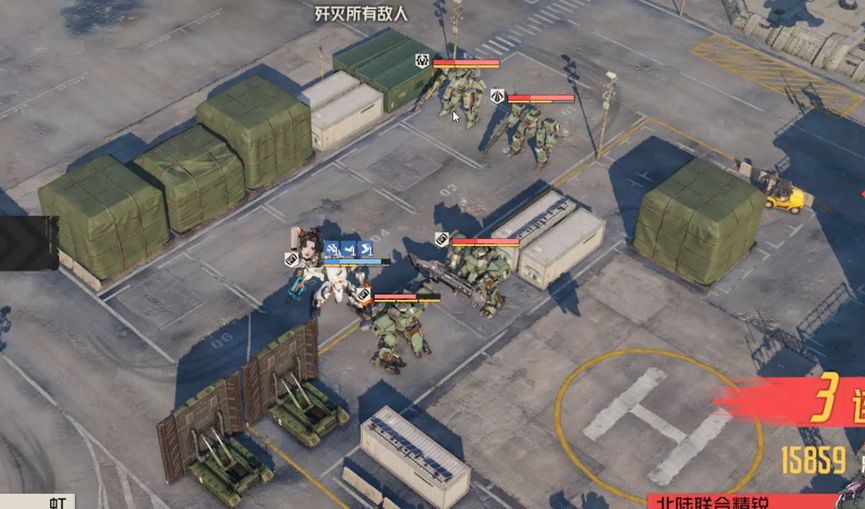 虹消灭突击兵,然后再动去左面消灭两个战术兵