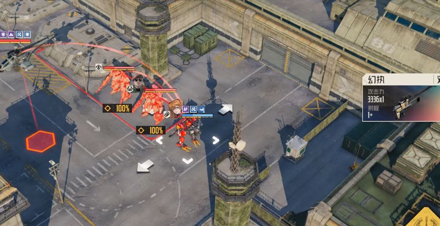 洛莎走到右边该位置攻击敌人,为明日香压低血量,必须触发专武的再移动效果
