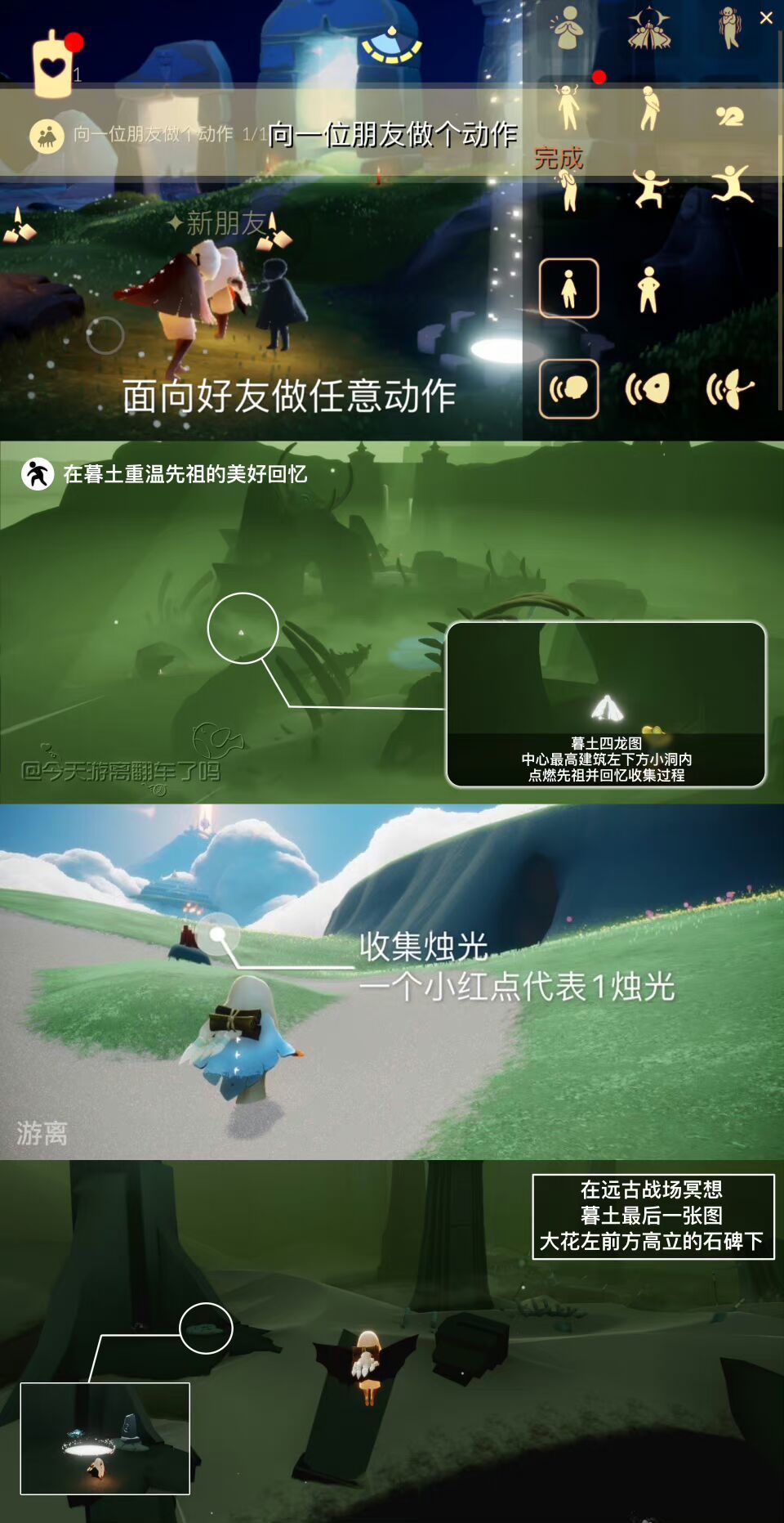 《光遇》游戏中每天的每日任务及大蜡烛的位置都不相同,玩家完成每日任务及收集大蜡烛都可以得到丰厚的兑换奖励,奖励可以用于兑换各种动作及道具,不过很多小伙伴不知道每日任务怎么做,又懒得自己去找大蜡烛的位置,我们汇总了每日任务的完成攻略以及蜡烛位置,一起来看看吧!