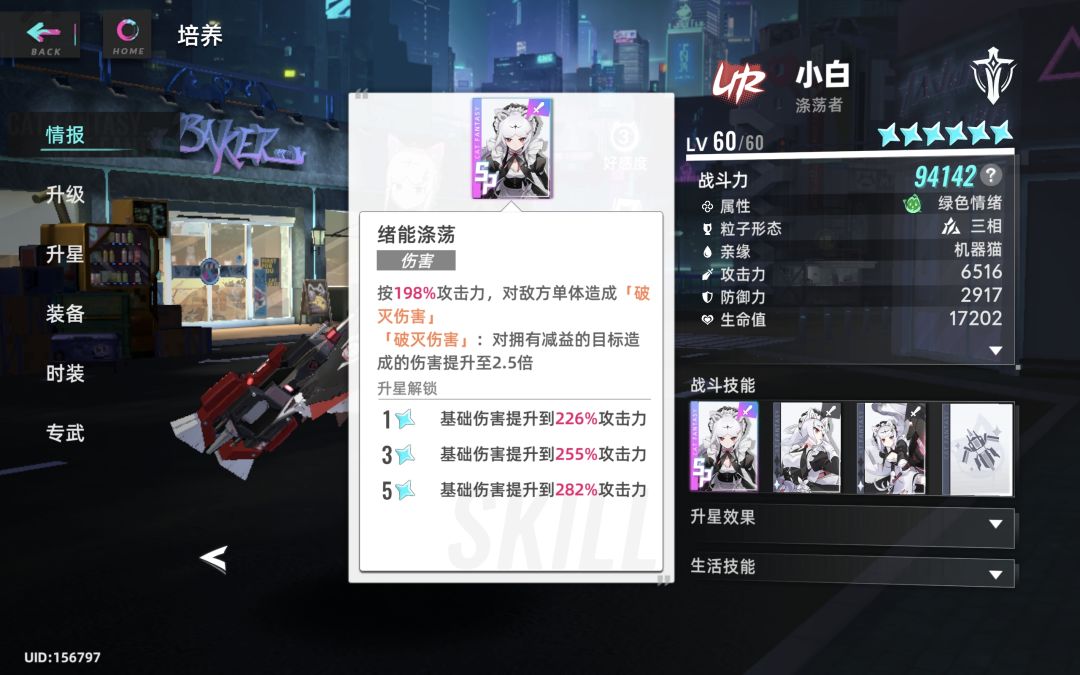 四星牛就牛在,最终伤害直接变成136%,提升非常大,PVP的时候往往可以一技能二技能一套秒人。