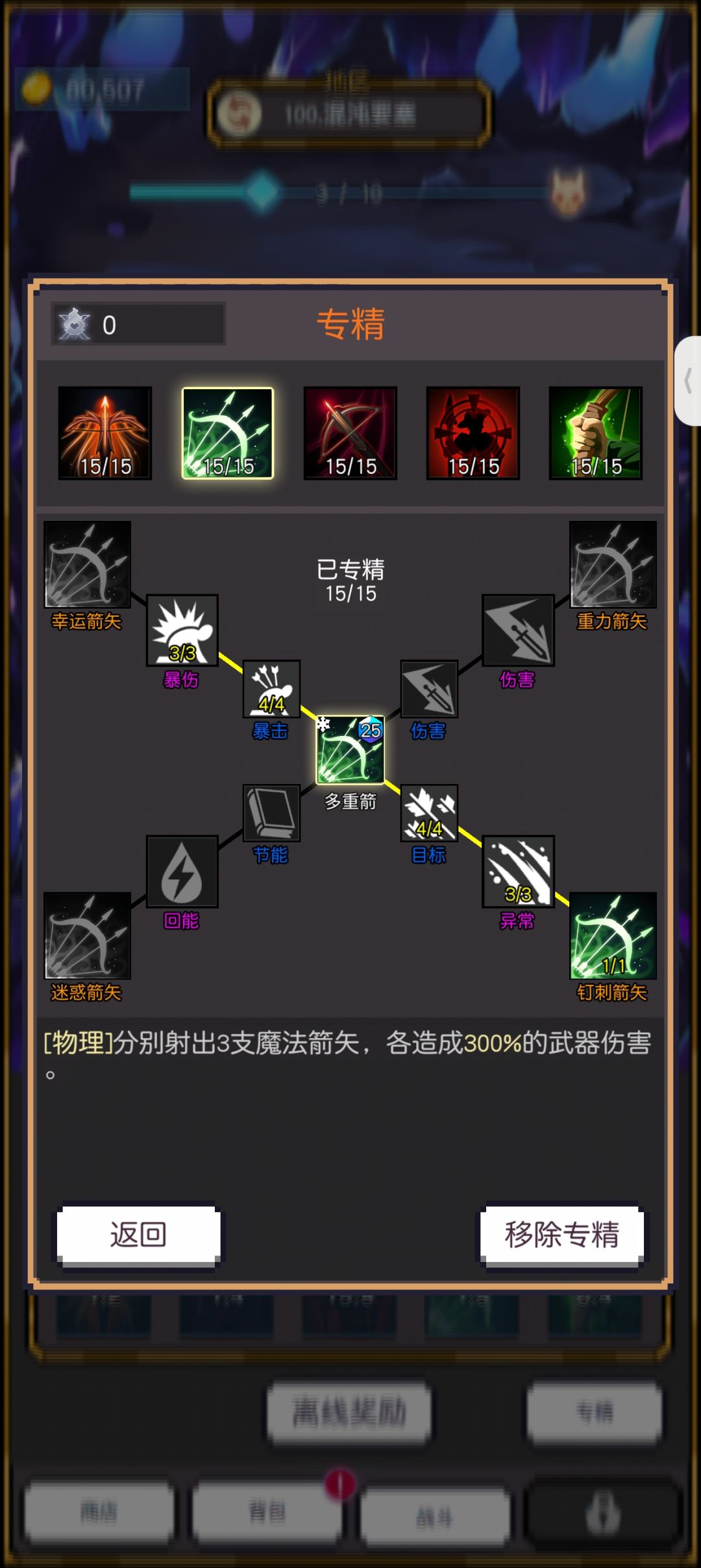 5.追踪箭一定要点一个回收如果还不够就点两个因为以上技能蓝量需求比较大,打boss的时候可以卸下来