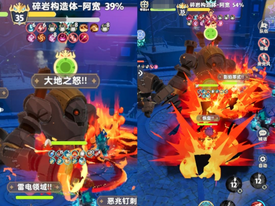 战斗开始后,每隔10秒「Boss:碎岩构造体 - 阿宽」会对全体玩家造成电能爆发效果,造成少量伤害并给自身附加伤害提高10%与受到伤害增加10%的效果,可叠加,可驱散。