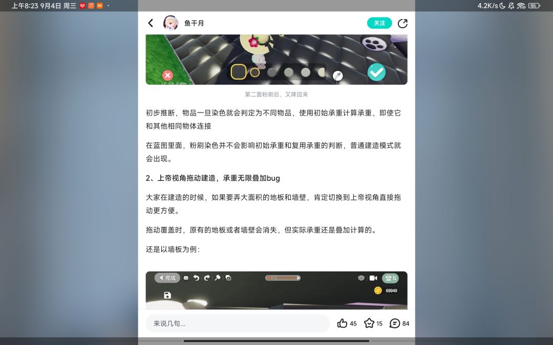 3)建造模式下的承重bug,如染色和上帝视角拖动建造导致的承重问题;