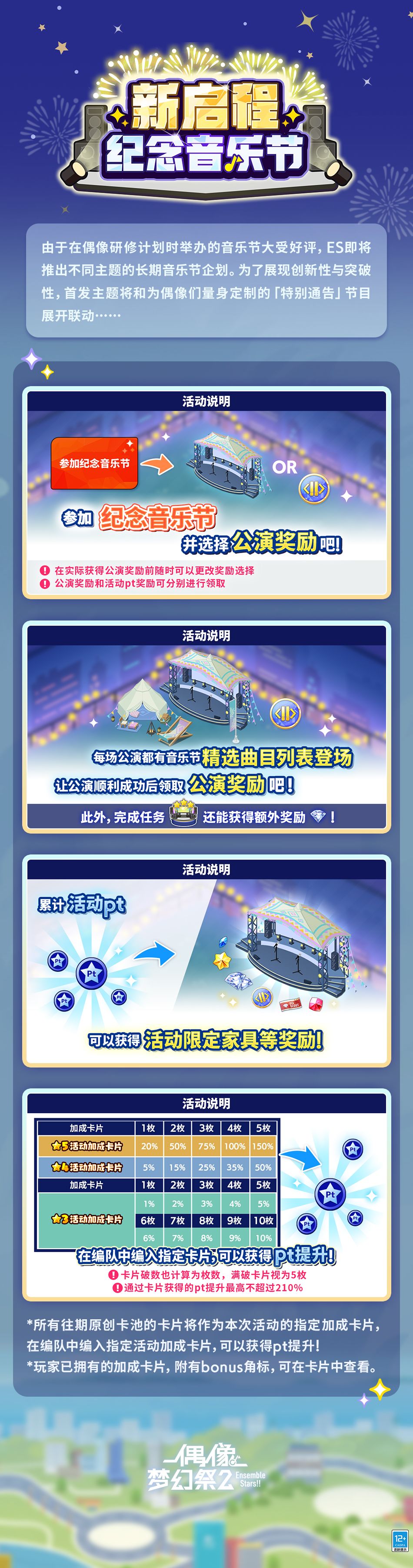 每场公演有音乐节精选曲目列表,完成相应公演数量可获得选择的活动回忆硬币、活动限定家具奖励,还可解锁活动迷你对话奖励。