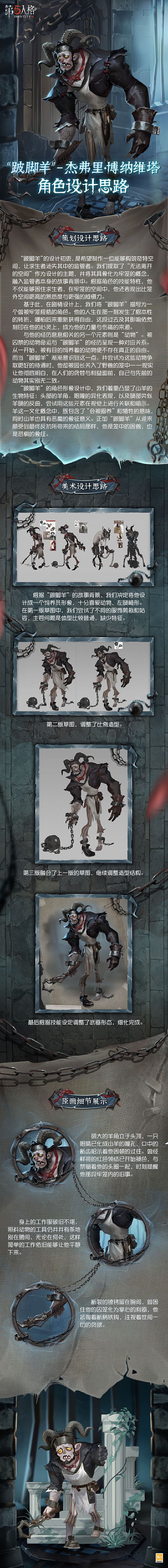 他是笼中的困兽,也是恐惧的象征。 点击长图,即可了解全新【监管者】“跛脚羊”的角色设计思路!