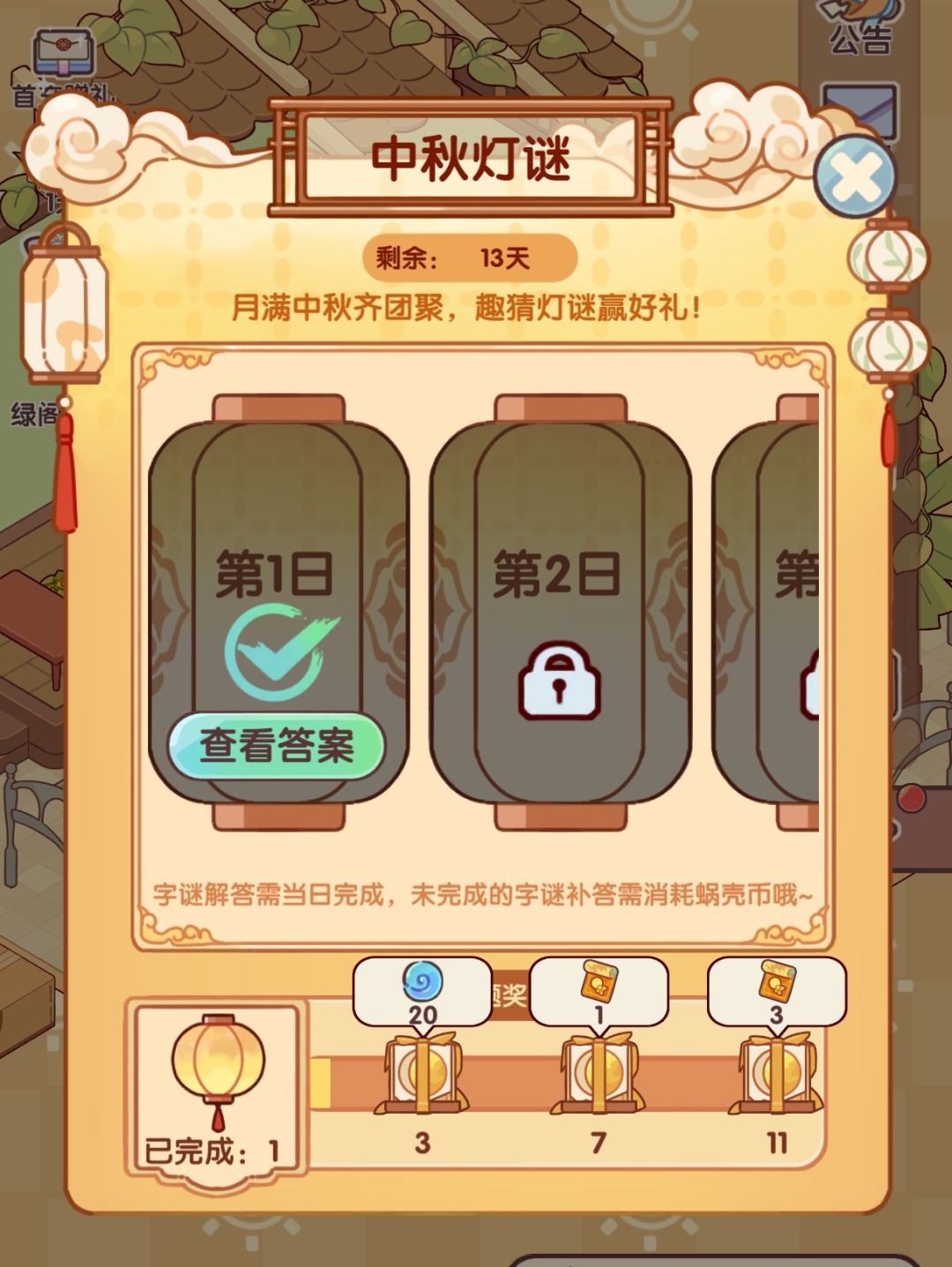 猜灯谜活动,一共11关,答对通关,可以获得中秋套间的设计稿!没猜错的话应该7号上线