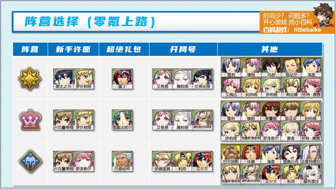 接下来小百科再根据具体预算的不同。来讲解一下阵营的选择和阵容的搭配。