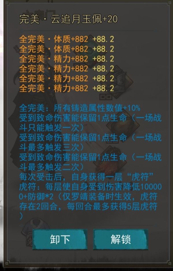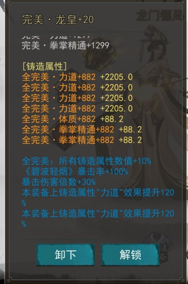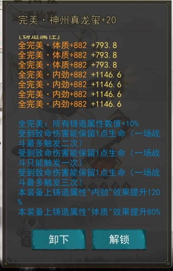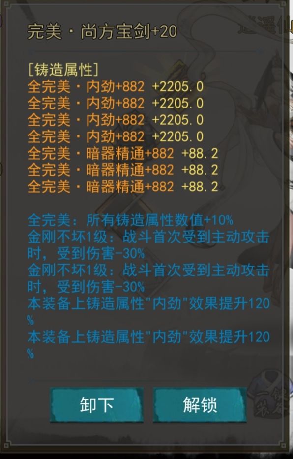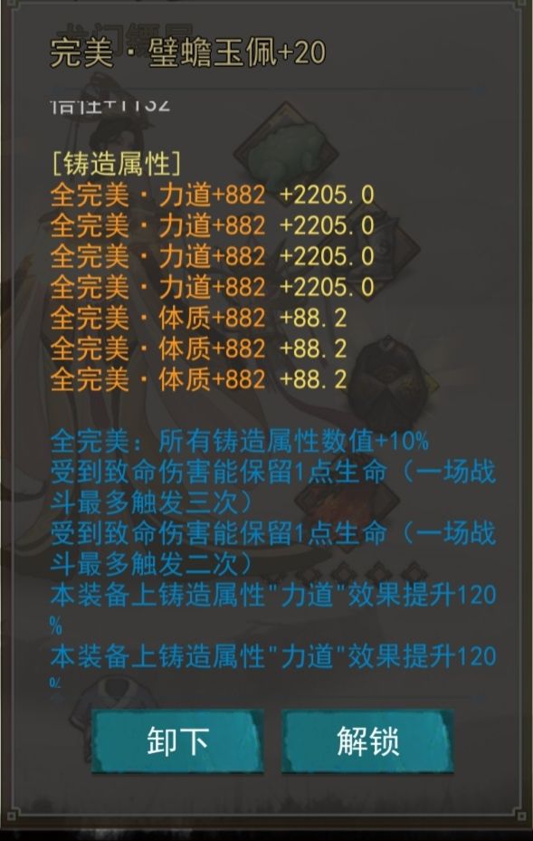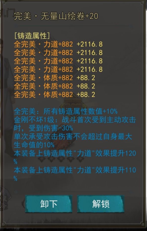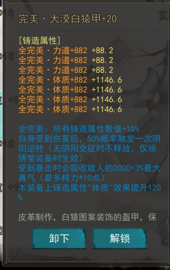 其次,装备。我侠做的最成功也是最失败的就是锻造系统。失败在官方没有任何引导,全靠玩家自学,入门难度也相对比较高。当然学会如何锻造之后还是挺有趣的。选择了一些还算能入眼的截了下来。一些220的三词太多就不截了。