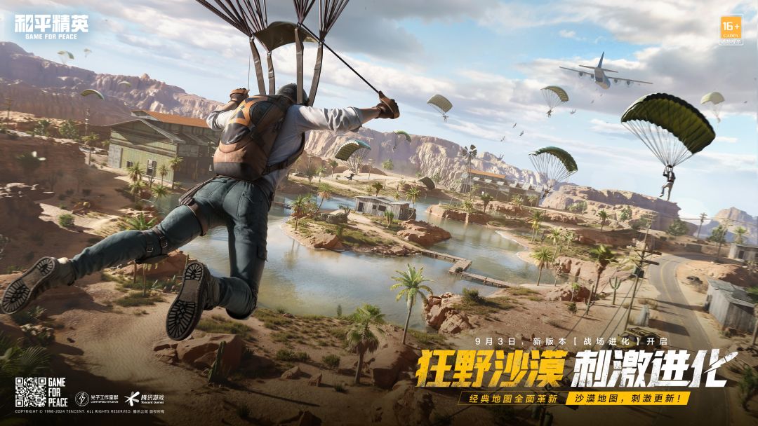 《和平精英》「战场进化」全新版本现已正式上线!此次全新版本将带来经典沙漠地图的焕新升级,提供更硬核、更丰富、更全面的沙漠战斗体验!新枪械-MG-36轻机枪、新武器-轻型迫击炮、沙漠地图新载具-G53堡垒-沙漠越野车、新道具枪械-M79烟雾榴弹发射器,还有滑索、木桩和飞索等沙漠地图新互动机制等待大家体验!