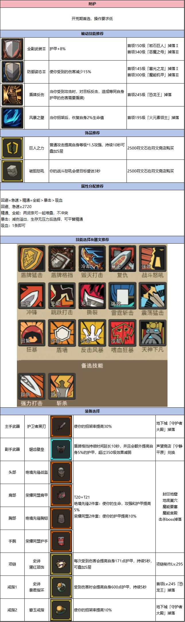 主堆护甲,通过高额的招架以及闪避触发暴走雕文的复仇进行输出,装备优先升级肩部+手腕(因为白字+护甲)