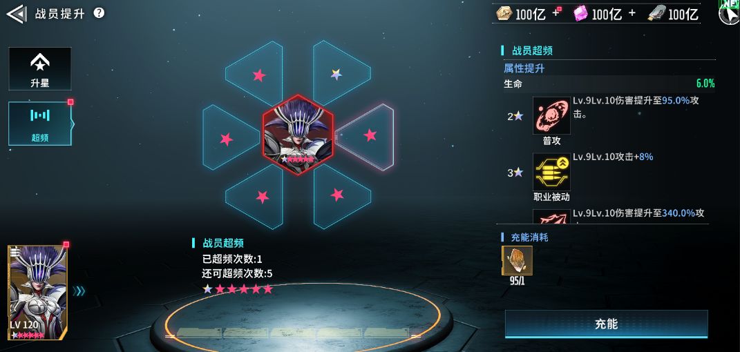 (注意:彩星只能在红星的基础上消耗指定的超频材料来提升,彩星数量无法超过红星数量。)