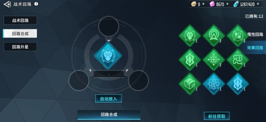 战术回路基本分为3部分功能:战术回路、回路合成、回路升星。