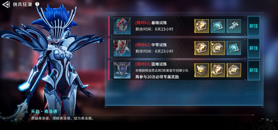 活动介绍:本期超频战员为“咲·斩月”、“莱薇·神经漫游者”、“弗洛德”、“拉斯”(后续各个SS战员会逐步开放超频)