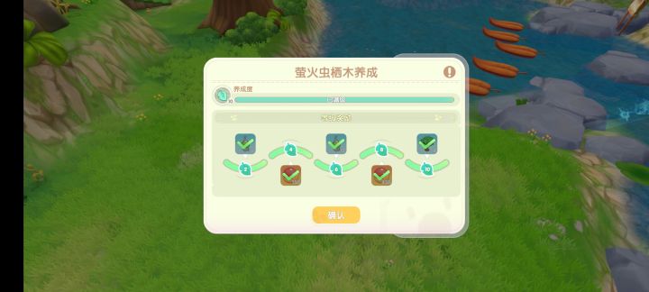 刚开始活动有养成度加成,浆果蜜,土和天空水每天拉满,活动加成期间弄到了5级,活动结束后就懒得弄浆果蜜和土,存了400天空水浇了25天终于把萤火虫木升到10级满级领完奖励了。