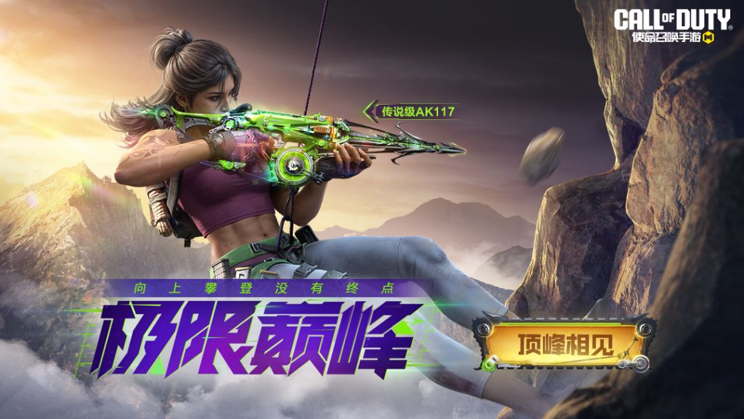 9月6日(本周五),极限巅峰活动荣耀登场,传说级武器AK117-极限巅峰与它的持有者史诗级角色吉娜索-攀岩者降临战场。