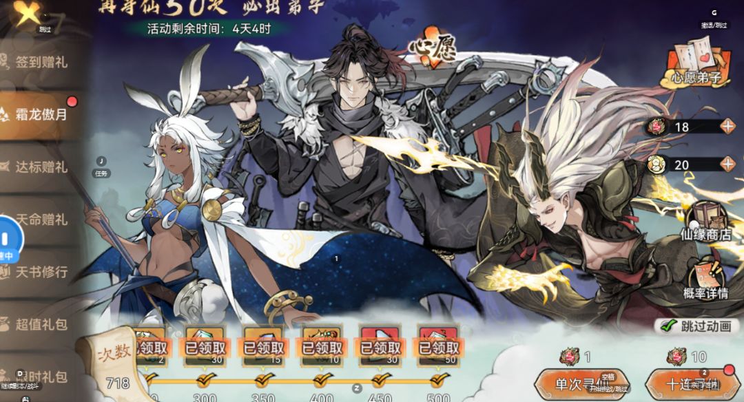 千呼万唤始出来,大家期待的卫寒与敖天同时迎来了返场,这次是继云龙聚月活动后,敖天的第二次返场,随之而来的还有500抽免费获得功法箱与700抽的道兵箱子,大家可以根据自身情况选择道具,在兑换道具方面,建议大家优先选择天命重置和许愿币,氪金玩家需要注意,这次700抽限购礼包是没有技能书的,大家最好还是在第一期敖天出场时候购买大荒技能最好。