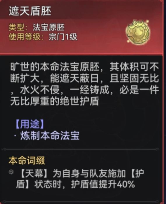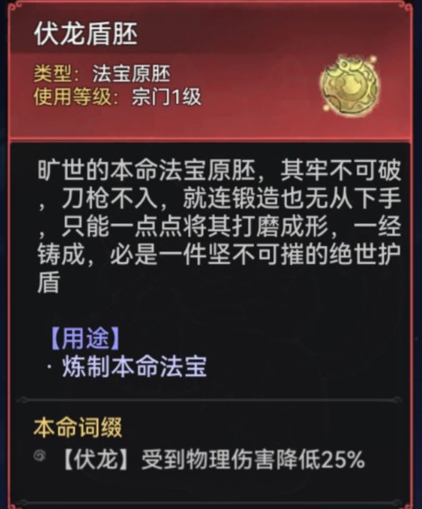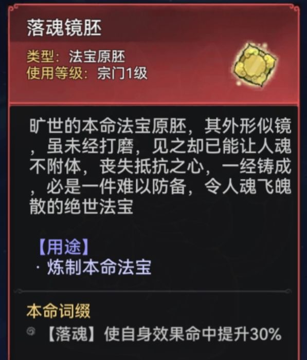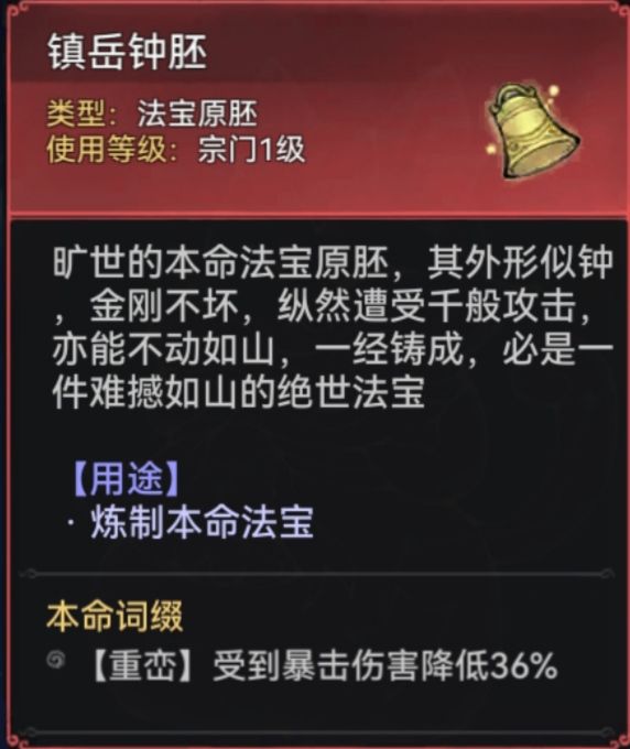 建议大家在三阶法宝开启后(39级)再考虑本命法宝,强化可以在40级突破渡劫时消耗修为丹同步喂养本命的蕴养等级