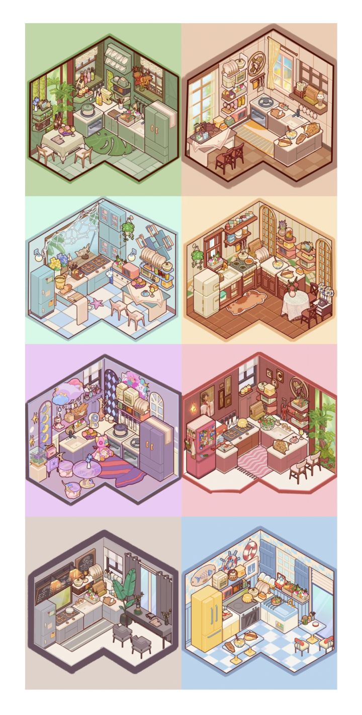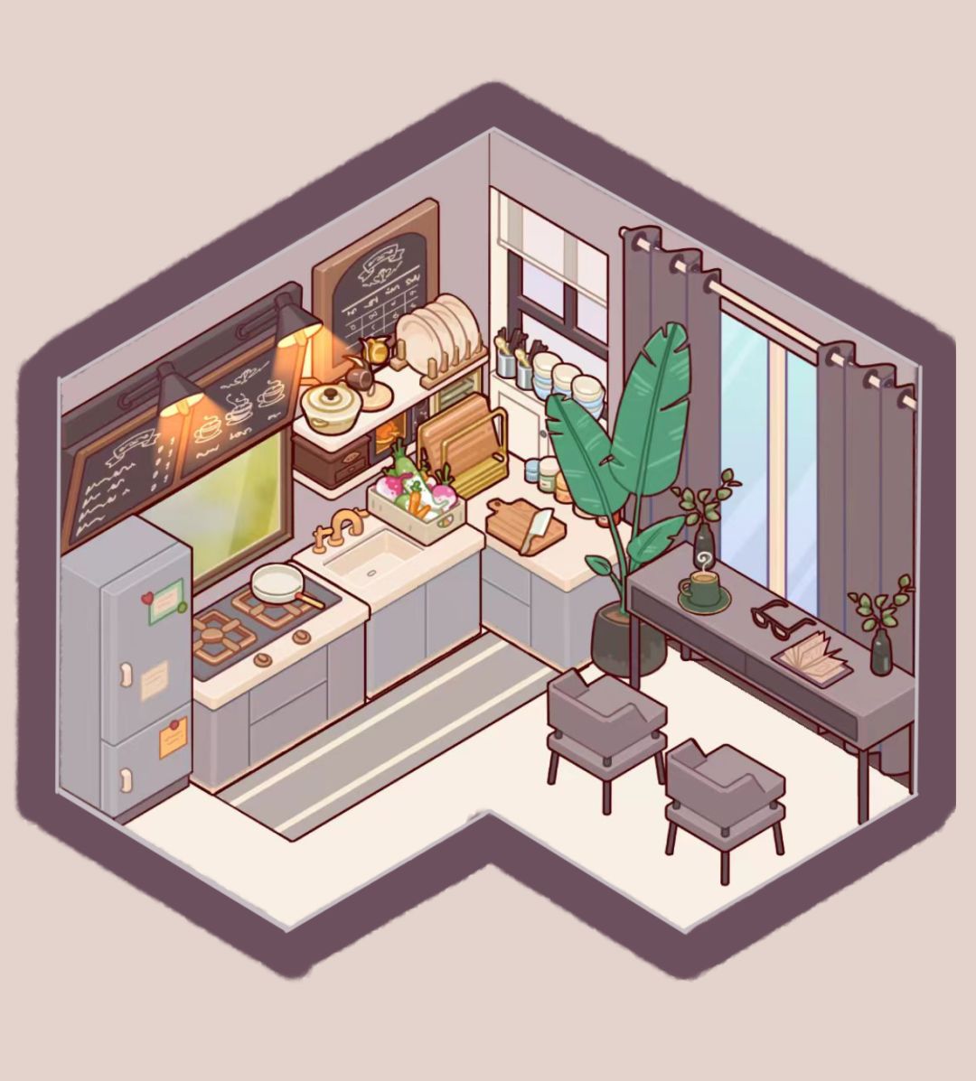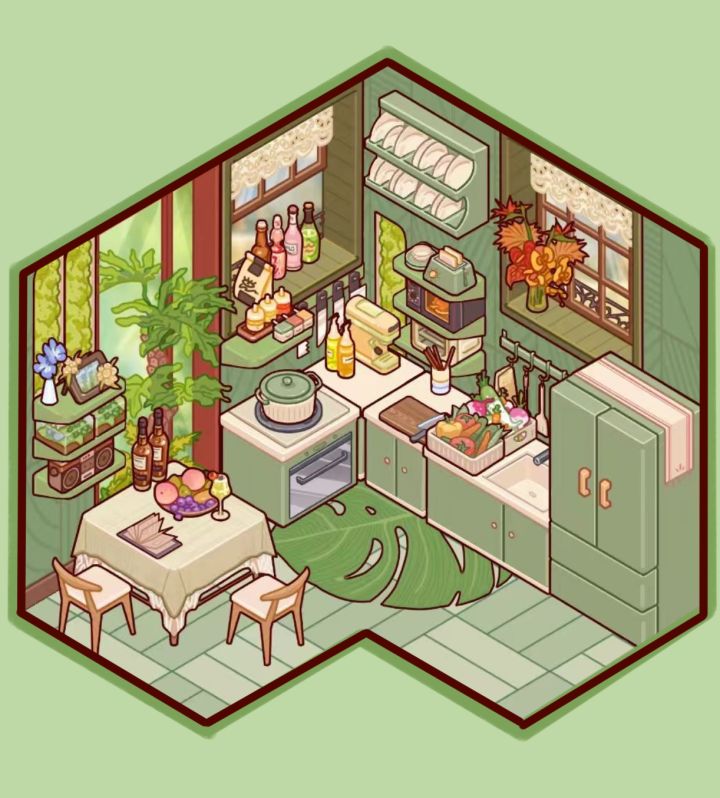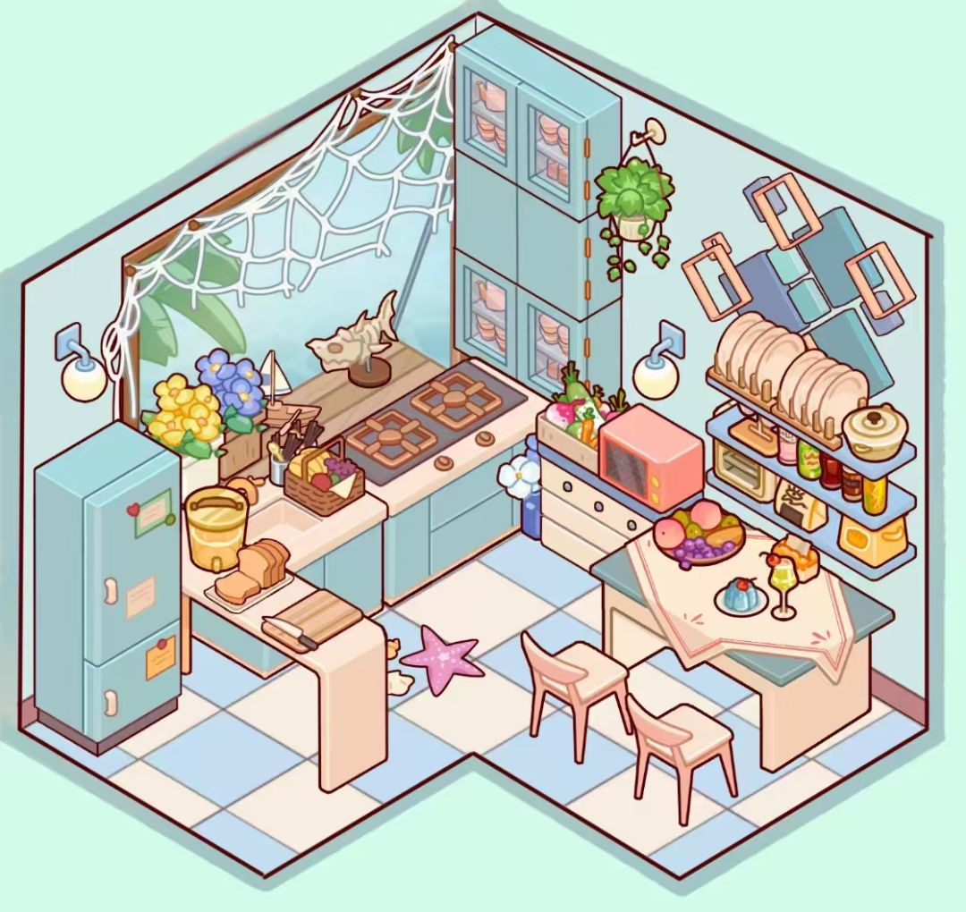 ⭐️如果厨房家具没有那么多颜色,也可以用混色,主要是厨房家具摆放的位置