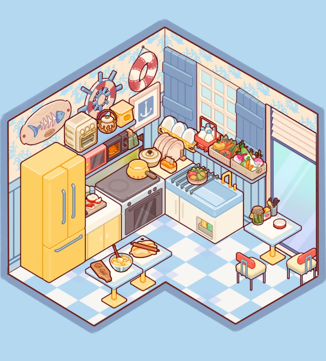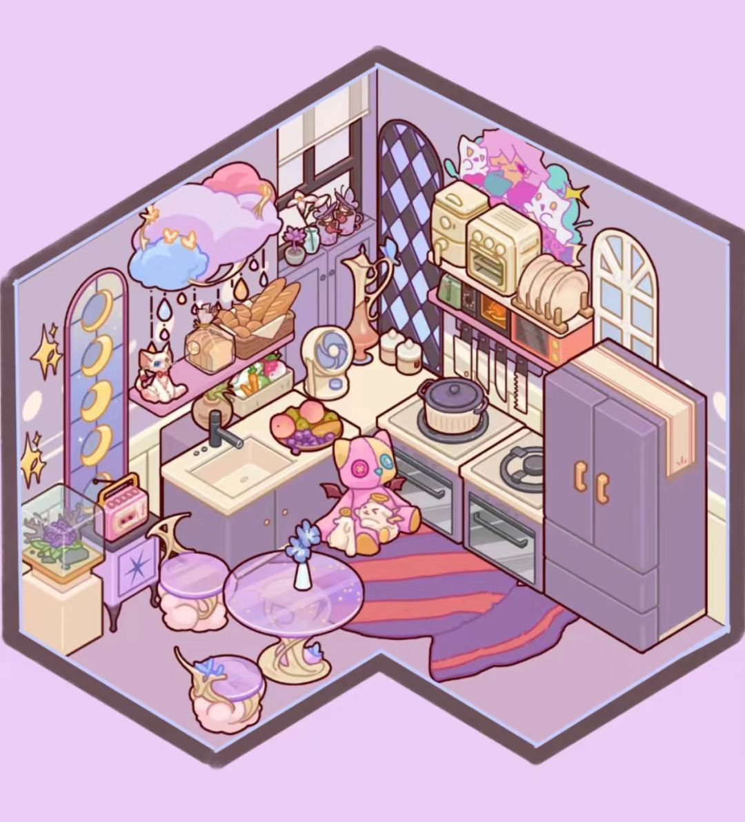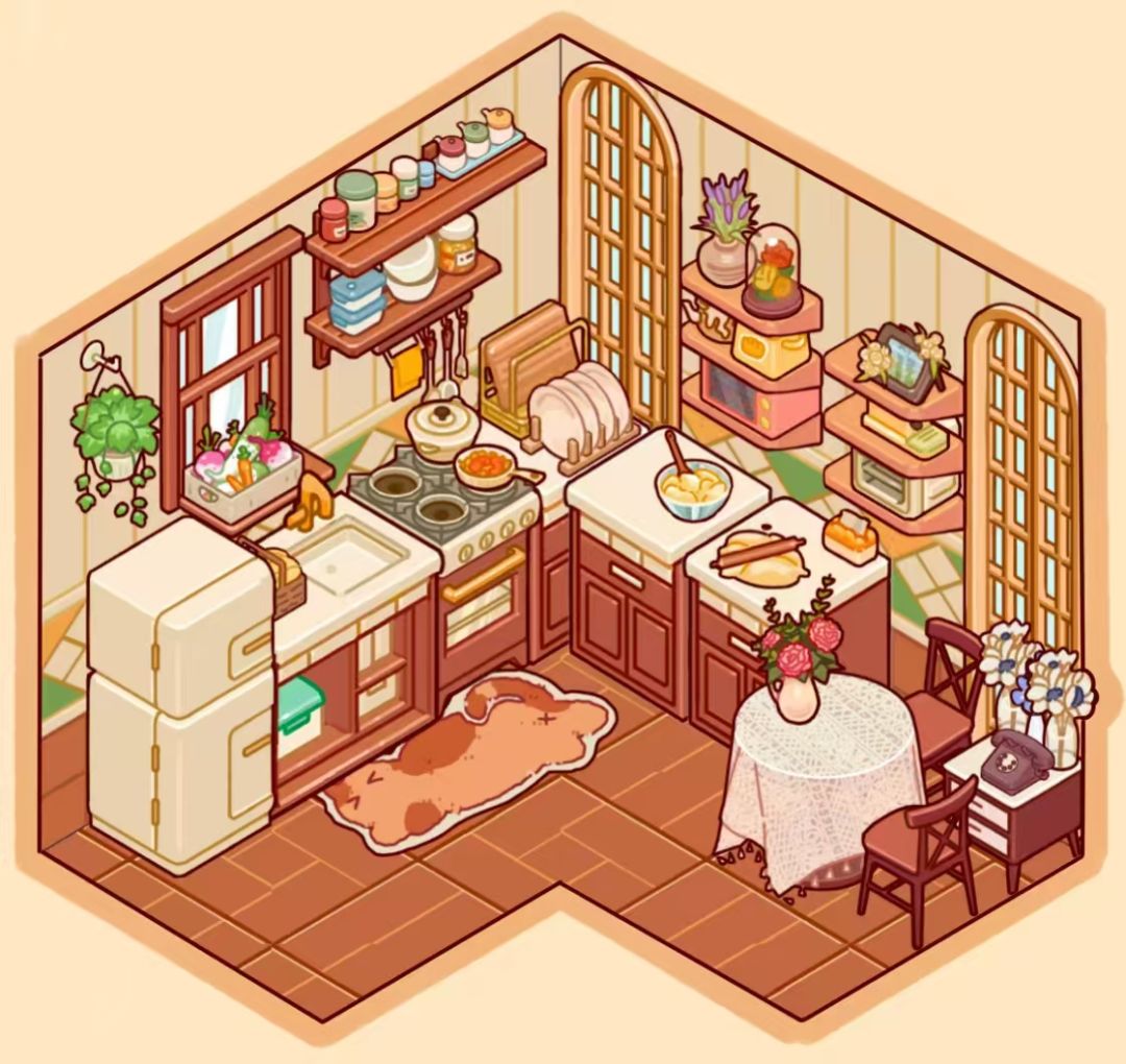 ⭐️如果厨房家具没有那么多颜色,也可以用混色,主要是厨房家具摆放的位置