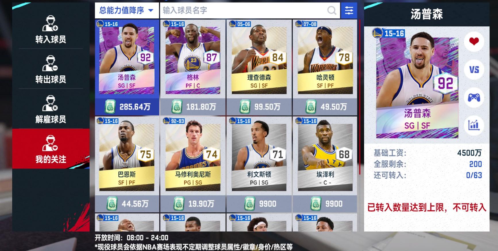 卡池上线48小时后在转会市场的上新球员中各位Boss也可以通过支票直接购买心仪的勇士历史球员(包含银卡球员)。