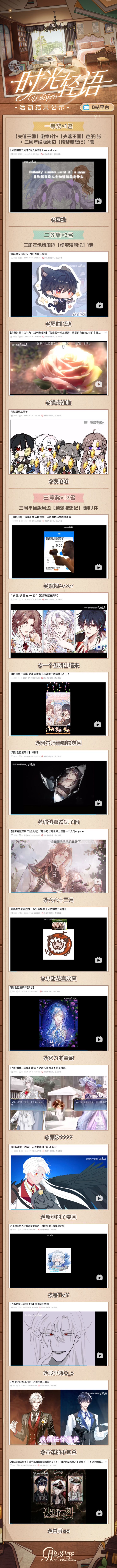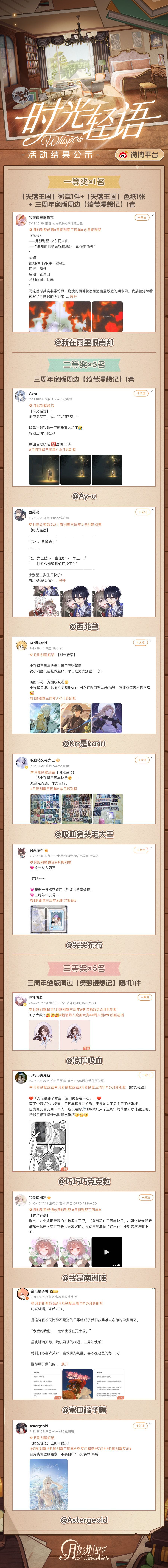 【月影别墅】时光轻语三周年征集结果公布,各位血猎大人可点击下方长图查看。