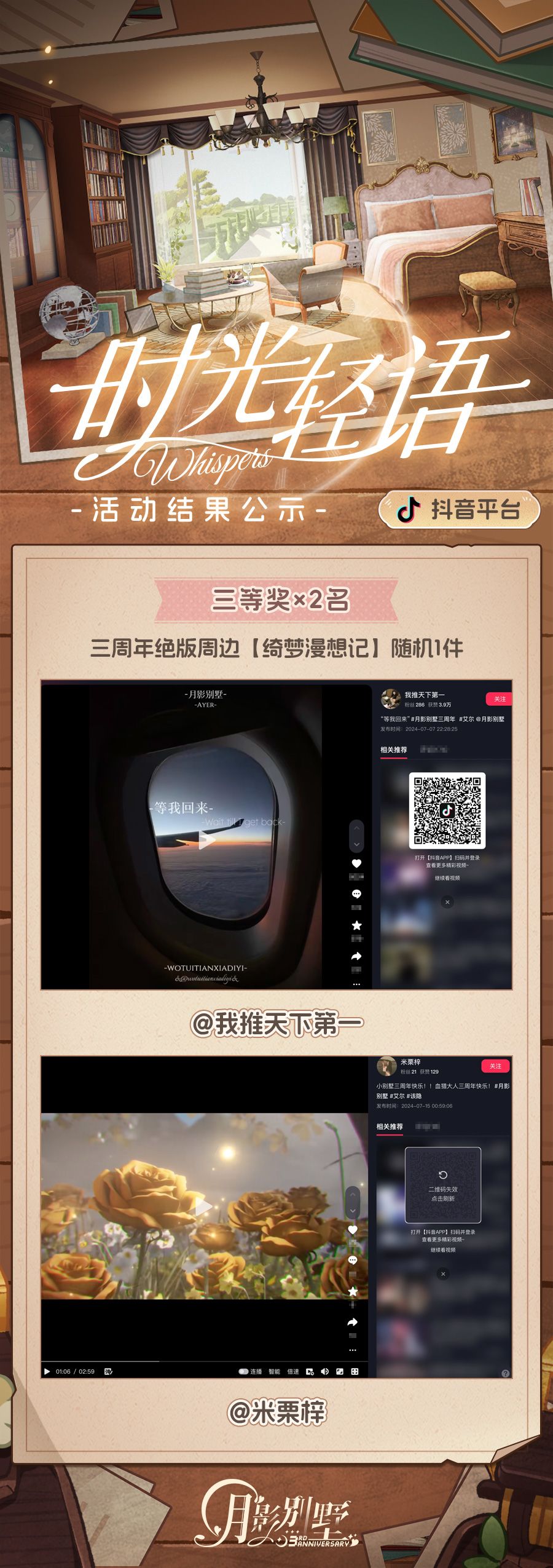 【月影别墅】时光轻语三周年征集结果公布