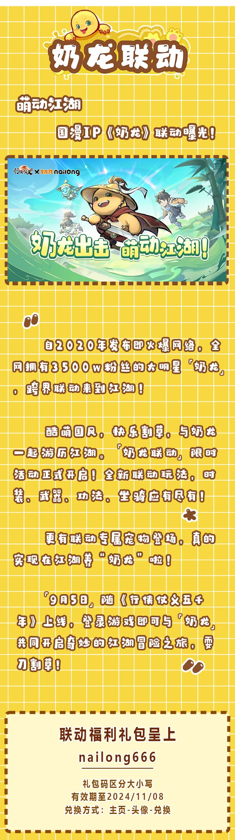 【重磅】奶龙出击,萌动江湖!《行侠仗义五千年》x《奶龙》IP联动