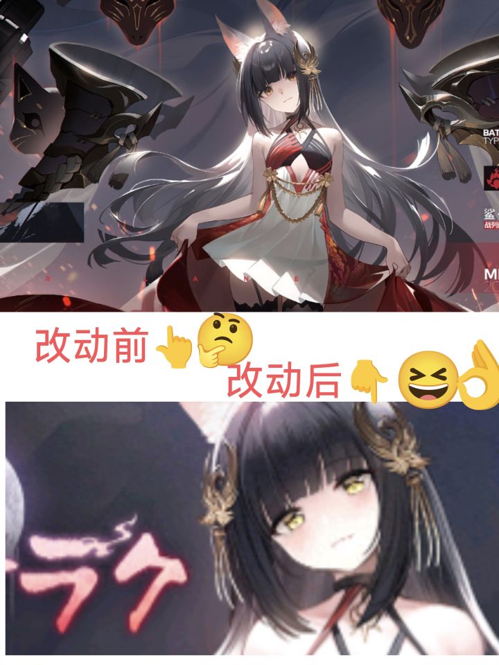 实际上改动的不仅仅是面部方面的设计仔细看能发现实际上真正改动的地方还是挺多的,包括头上的发饰额外多了一块,同时头发对比之前,发量有所提升和增加,明显增多了一些,同时打光方面也有了变化,改动后明显看着更加的白皙了,因为日服公开的只是宣传图,所以我们看不到改动后完整的立绘是什么样子,所以说不定包括身材这一块的设计,还有服装搭配穿着上,都进行了脱胎换骨式的大幅度的改动。
