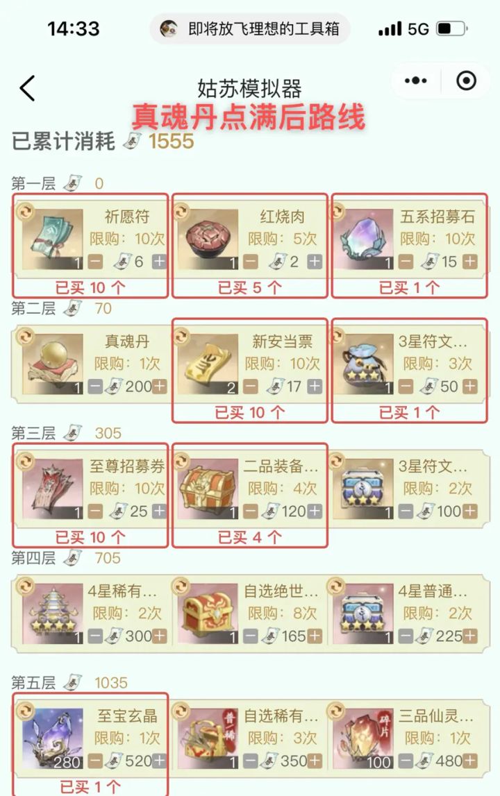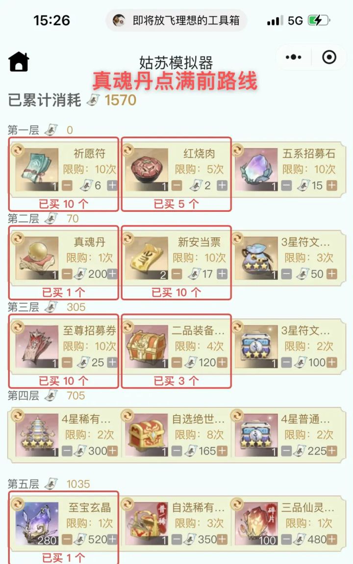 1.放弃姑苏第4层符文,改为第三层3个S2箱子。