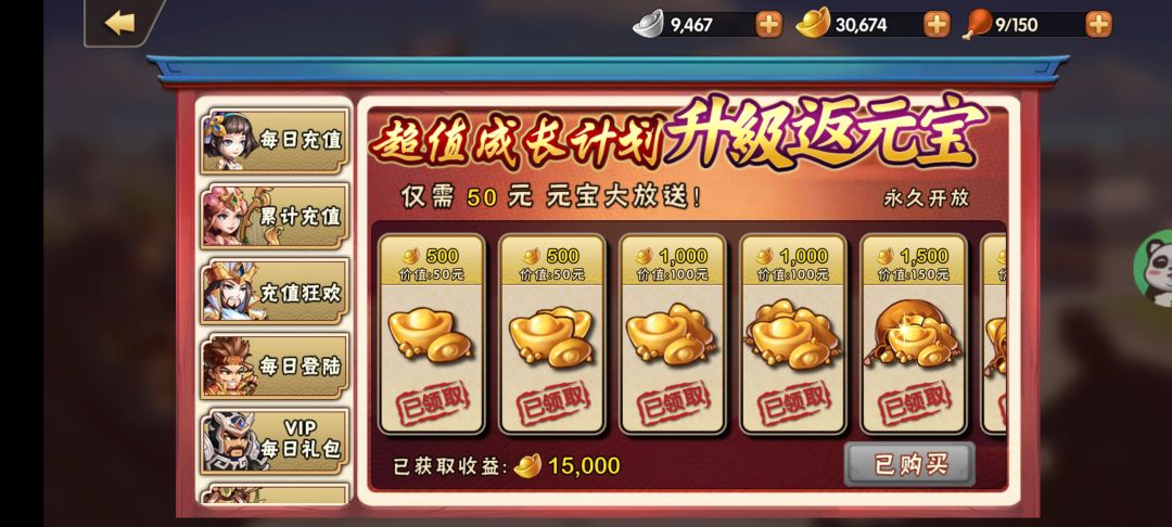 微氪玩家:开服七天每天冲30把神赵云拿下顺便拿下V6,第一天先买基金,后面可以买几次月卡很值(可以续天数每天领120买的当时还可以领300),然后礼包买六块钱的然后其余的就看着搞。
